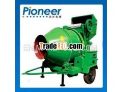 - As a gravity type of duble-conic reversing drum Conrete mixer,the drum transmits by gear of friction wheel.The drum rotatesclockwise during mixing and anticlockwise during discharging.Themixer can mix plasticity and damp half-dry concrete.It is usuallyused on ordinary construction sites, roads, bridges projects andconcrete prefabricated parts factories.